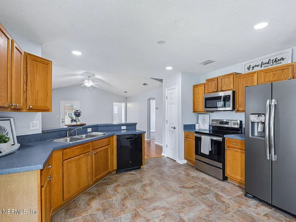 Welcome to this charming 3 bedroom, 2 bath home offering comfort, style, and value. Step into the spacious family room featuring a vaulted ceiling that fills the space with natural light and an open, airy feel. The kitchen with dining nook is perfect for both everyday living and entertaining. With all appliances included, moving in will be a breeze! The private owner's suite boasts its own bath for convenience and privacy, while two additional bedrooms provide versatility for family, guests, or a home office. A 2-car garage offers plenty of storage and parking space as well as the laundry. Outside, enjoy a covered back porch and fenced backyard - the perfect spot for grilling, relaxing, or letting pets play. Take advantage of this opportunity to own a well-kept home at a great price and with a low . Don't miss out, schedule your showing today!